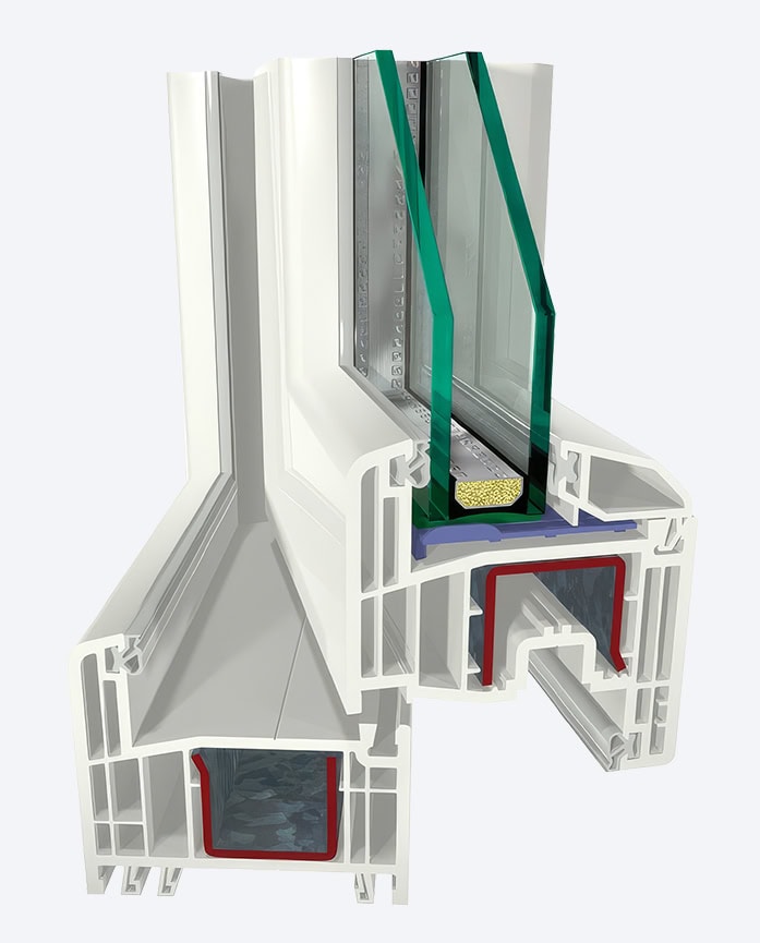 Sistem profila S 8000 IQ sa 6 komora i U-vrednosti od U f = 1,4 W / m 2K, daje idealan spoj očuvanja topline i stabilnosti. Dubina ugradnje od 74 mm omogućuje, uprkos rasporeda šest komora, obradu velikih čeličnih ploča za izravnavanje koje omogućavaju besprekorno korišćenje prozora duži niz godina.