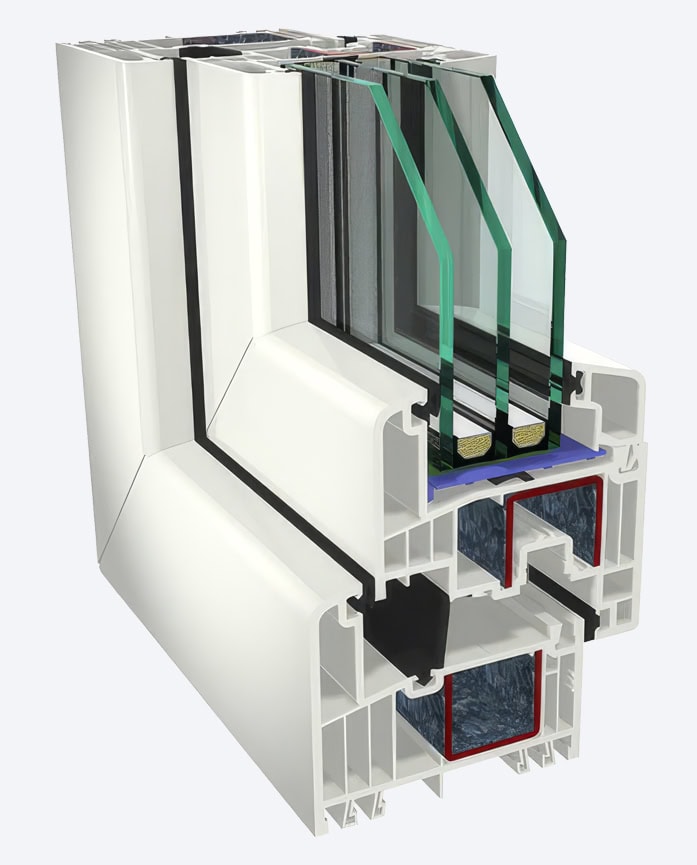 Izbor od 6 komora unutar profila, 74 mm dubine ugradnje daju dobru toplotnu i zvučnu izolaciju (vrednost toplotnog koeficijenta do Uf=1,2 W/m2K).